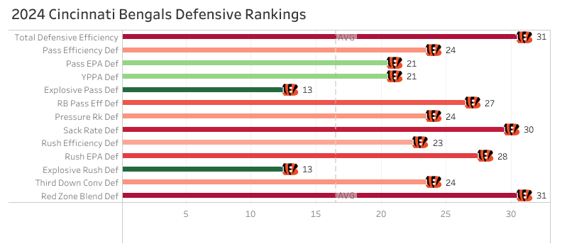 The Bengals did not bring a ton of pressure in 2024, finishing 24th in pressure rate (31.2%) and 25th in sacks (36).
