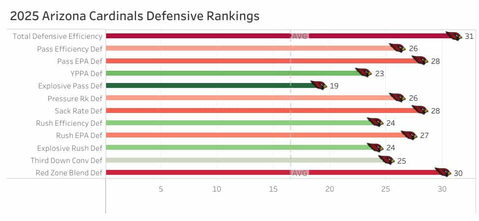 Arizona gave up 7.2 yards per attempt last season (22nd) while finishing 29th in EPA allowed per pass attempt.