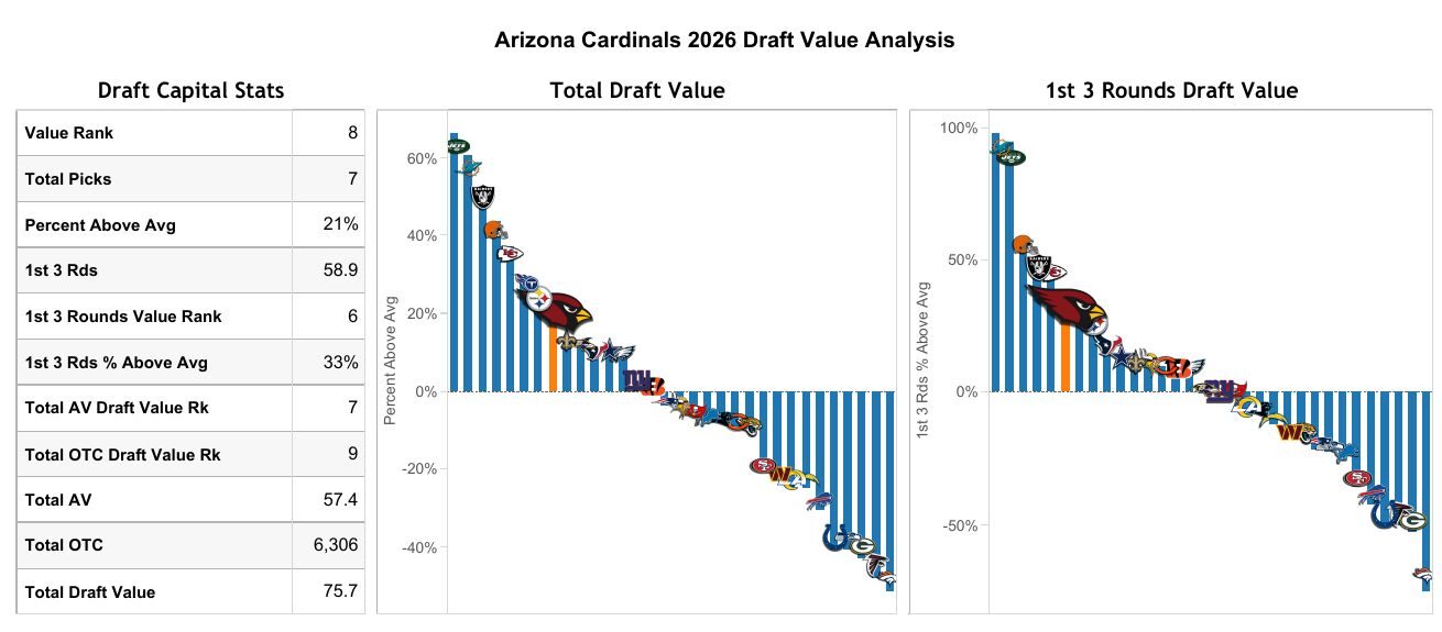 The Cardinals have the 8th-most draft capital according to our Sharp Football Draft Value.