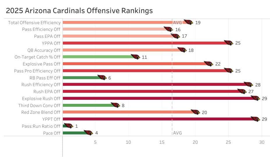 The Cardinals led for just 47 offensive snaps over the final nine games of the 2025 season, ahead of only the Raiders (36) and Jets (30).