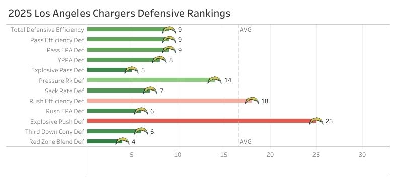 The Chargers allowed 6.6 yards per attempt (8th) last season and finished eighth in EPA allowed per pass.