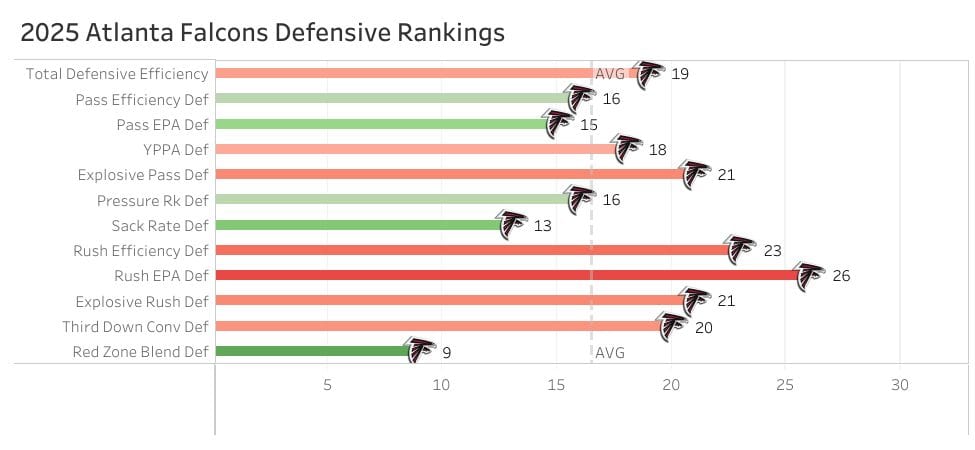 Atlanta allowed 7.1 yards per attempt (20th) last season and ranked 14th in EPA allowed per pass attempt.