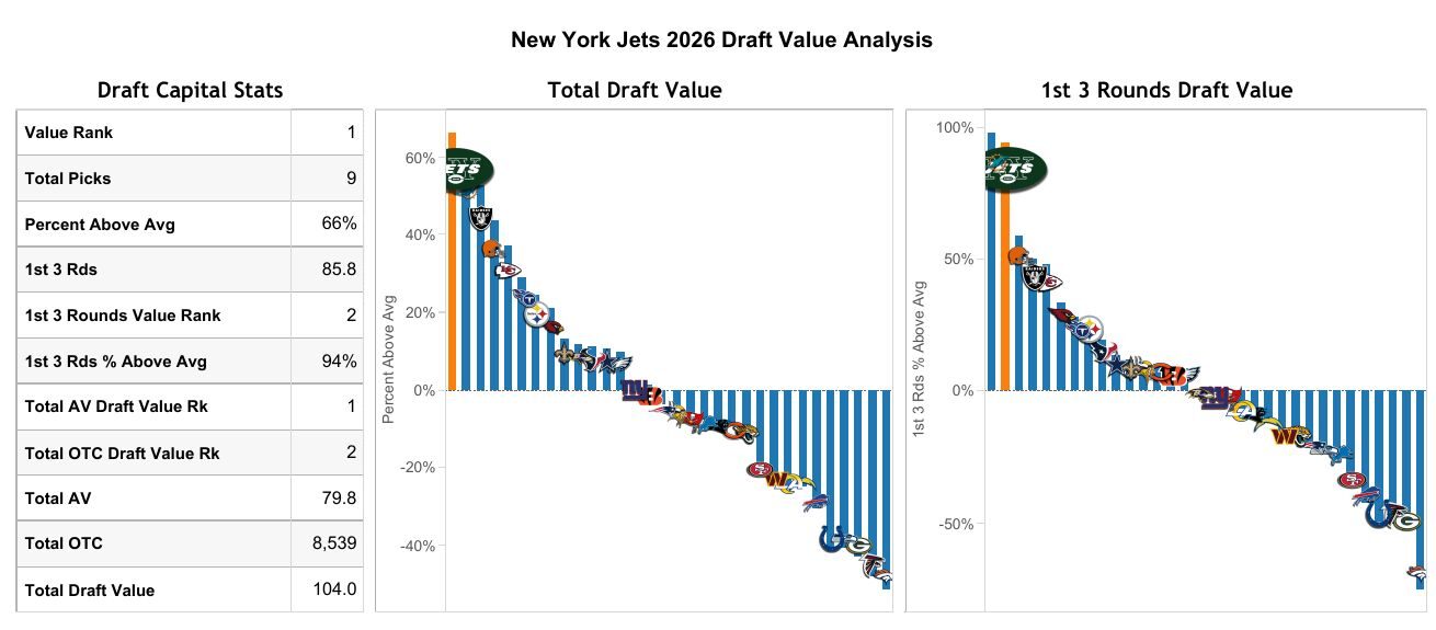The Jets have the most draft capital according to our Sharp Football Draft Value.