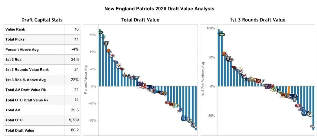 The Patriots have the 16th-most draft capital according to our Sharp Football Draft Value.