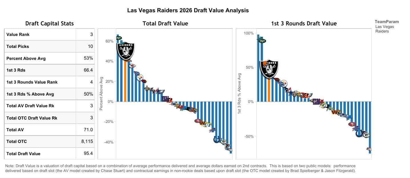 The Raiders have the 3rd-most draft capital according to our Sharp Football Draft Value.