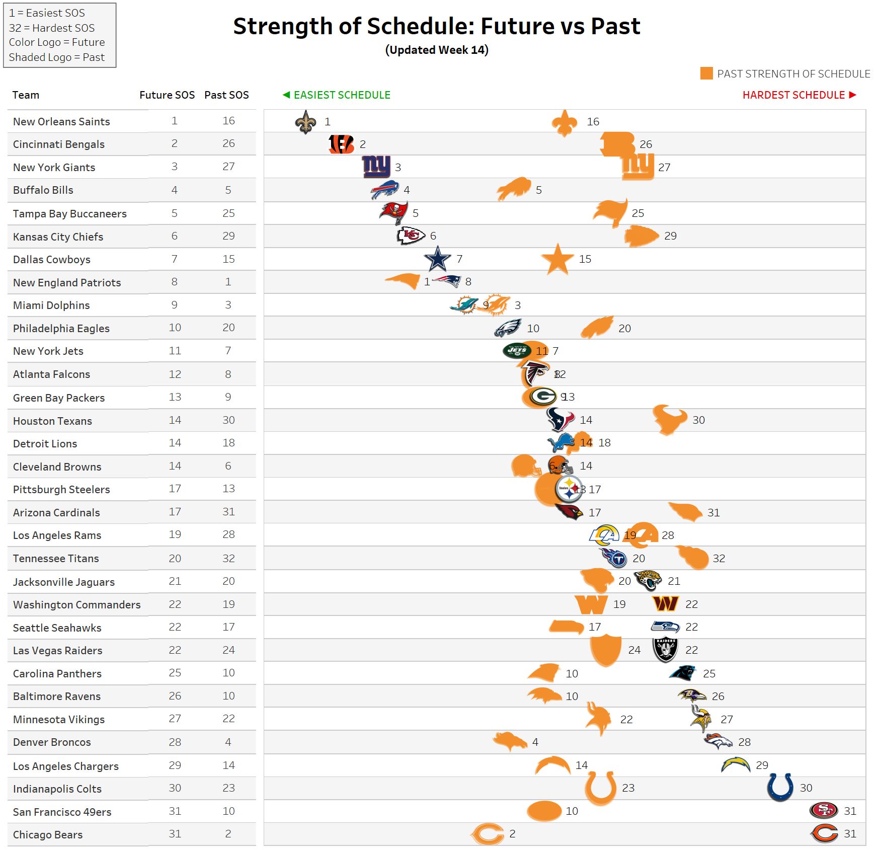 With 15 weeks of the NFL season complete, we have a good idea of which teams are strong and which are struggling, allowing us to examine the strength of schedule for the rest of the season for all 32 NFL teams.
