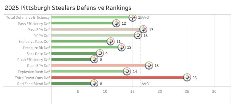 Pittsburgh finished 13th in pressure rate (37.4%) last season, but they recorded 48 sacks (6th).