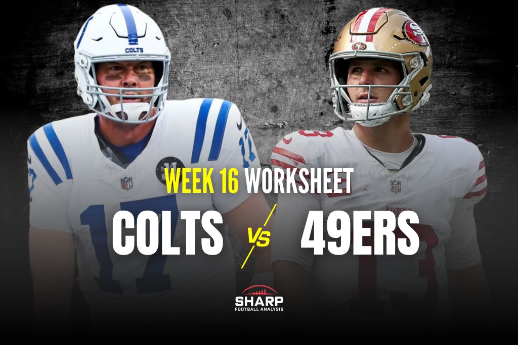 The Worksheet, a comprehensive fantasy football preview by Rich Hribar, breaks down everything you need to know about the Week 16 matchup between the Colts and 49ers on Monday Night Football.