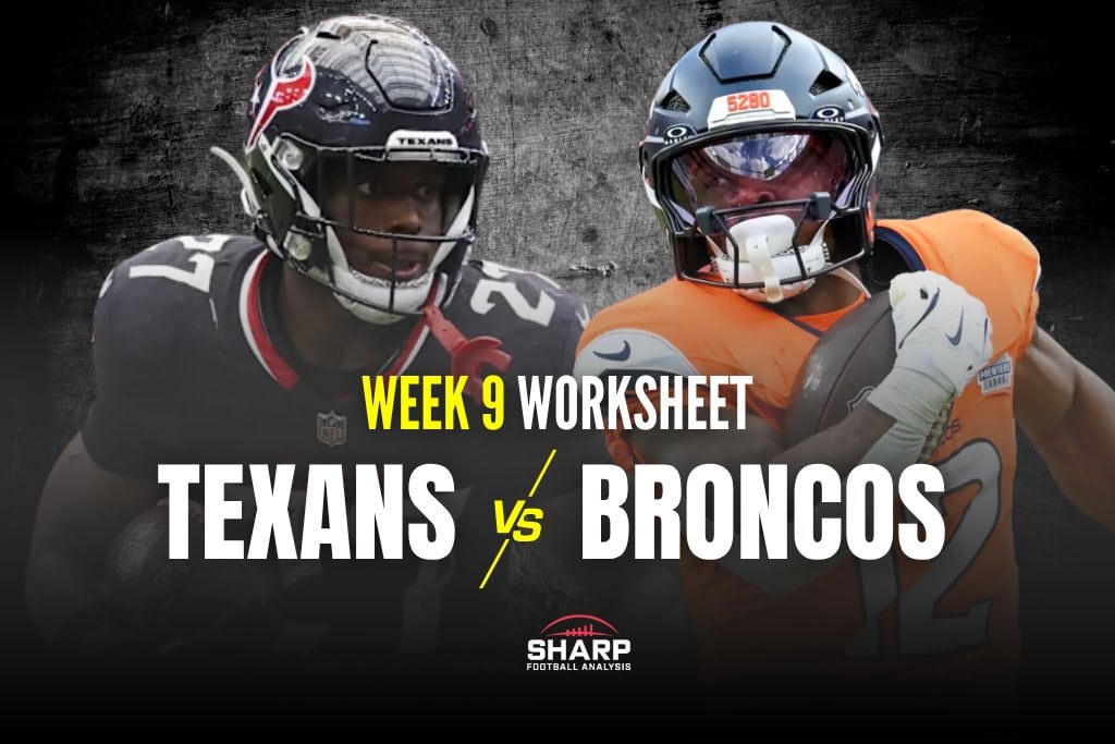 The Worksheet, a comprehensive fantasy football preview by Rich Hribar, breaks down everything you need to know about the Week 9 matchup between the Texans and Broncos.