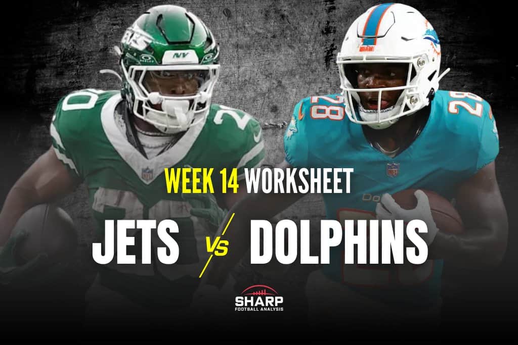 The Worksheet, a comprehensive fantasy football preview by Rich Hribar, breaks down everything you need to know about the Week 14 matchup between the Jets and Dolphins.