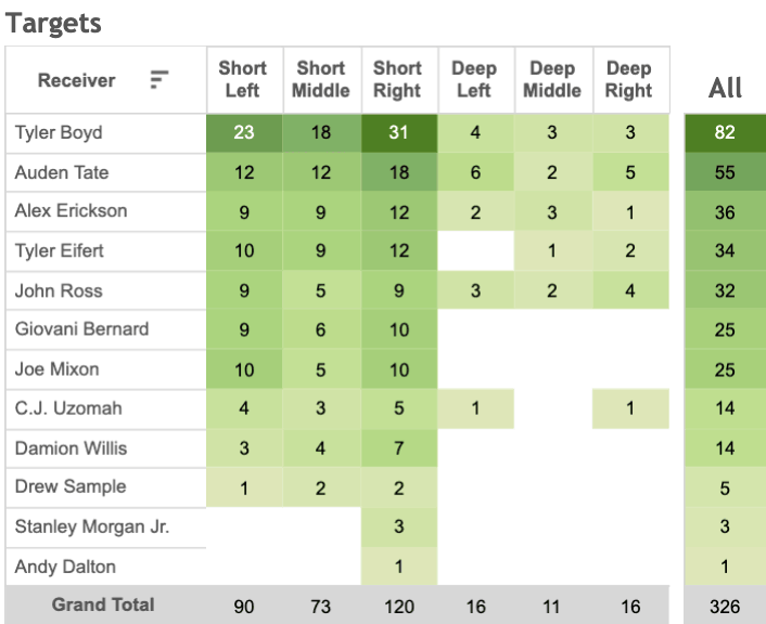 They are 3.5 point underdogs at the time of this writing, so the game could be close even though the Bengals haven’t tallied a W this season. Under Dalton, Cincinnati passed at the highest rate in the entire league when sitting within one score. They sported a 68-32 pass-run split during that time frame.