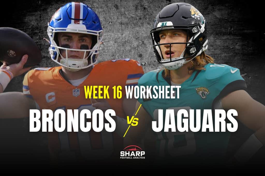 The Worksheet, a comprehensive fantasy football preview by Rich Hribar, breaks down everything you need to know about the Week 16 matchup between the Broncos and Jaguars.