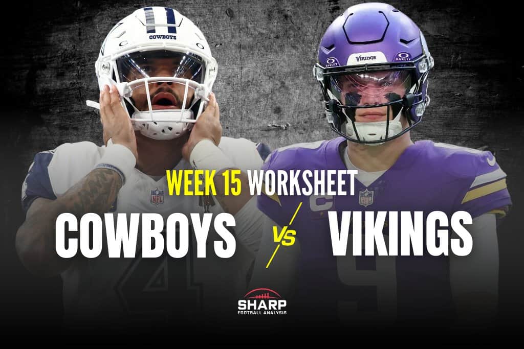 The Worksheet, a comprehensive fantasy football preview by Rich Hribar, breaks down everything you need to know about the Week 15 matchup between the Cowboys and Vikings on Sunday Night Football.