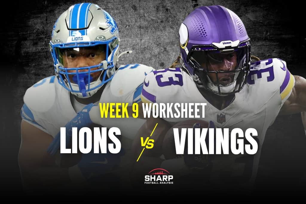 The Worksheet, a comprehensive fantasy football preview by Rich Hribar, breaks down everything you need to know about the Week 9 matchup between the Lions and Vikings.