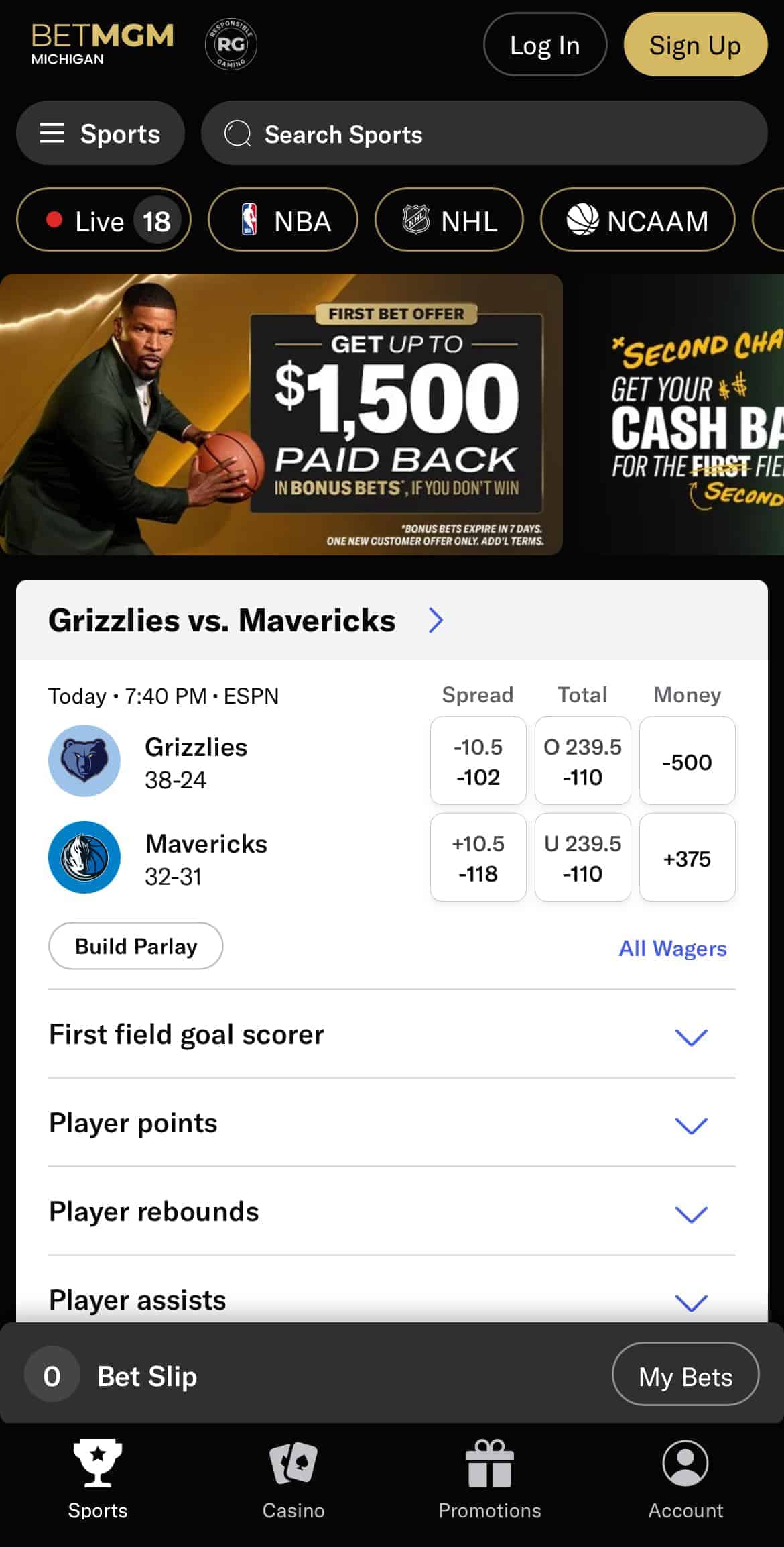 | 🎁 BetMGM MI Bonus | Bet $10, get $150 if first bet wins |