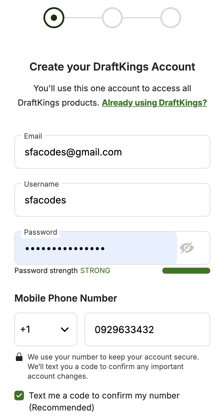 First, you need to open a new DraftKings account in North Carolina. Follow the steps below: