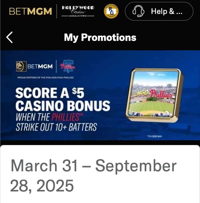 When the Philadelphia Phillies strike out 10 or more batters in a home game, you'll score a $5 Casino Bonus to use on Philadelphia Phillies Slingo. This promotion is available to claim once per week, Monday – Sunday.